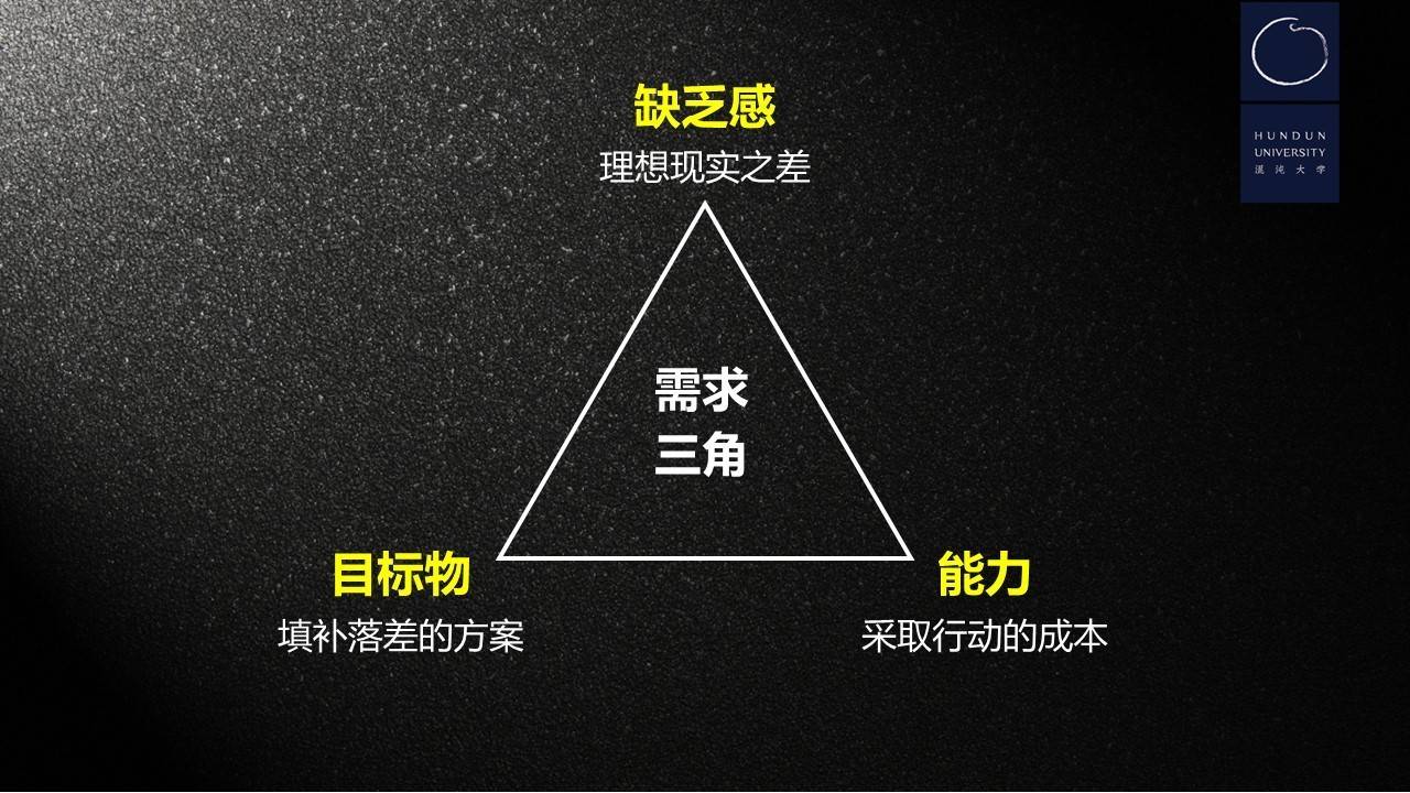 如何识别呢?就是要识别这三个变化:缺乏感、目标物与消费能力。这三者构成了至关重要的“需求三角模型”。