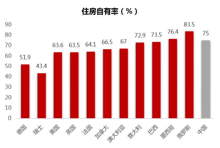 我们国家目前的住房自有率没有官方的数据可以支撑,行业内各种抽样调查的数据大约在75%的范围内。根据国际经验,经济越发达,住房自有率越低。随着经济的进一步发展,整体住房自有率预计还有10个点以上的下降空间。