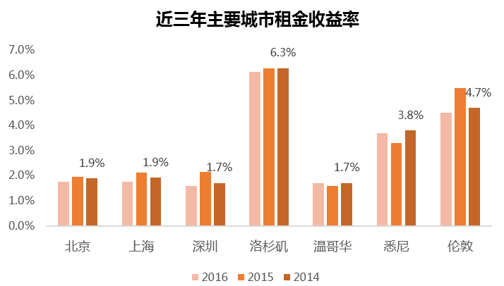 图4:国内核心城市资产价格收益率,低于主要可比发达国家城市
